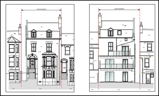 We were successful in gaining permssion for the enlargement of three existing flats in a traditional Victorian semi-detached building to be converted for wheelchair accessibility. This involed the construction of a part single, part 2 storey rear extension with the addition of rear balconies and a stairlift to the front steps.